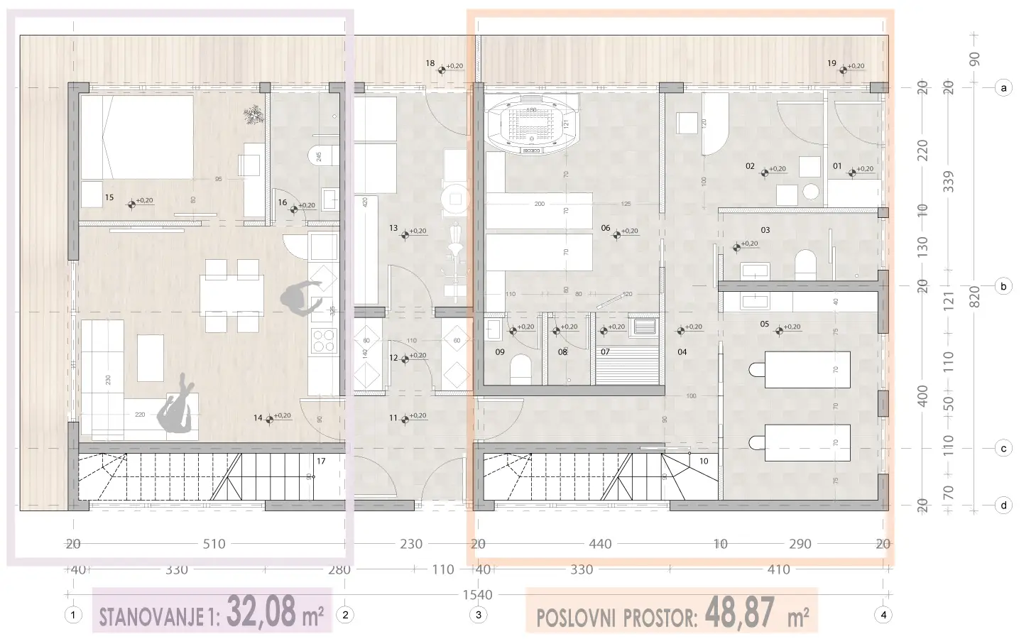 s a house with three apartments and one commercial unit. Three generations have joined forces to create a very modern and attractive house. The client, who wanted to combine his career and private life, has his own office space on the ground floor and above that a pleasant apartment. The seconf floor flat has a couple of mature years who mainly wanted an open central space. And a client of the youngest generation, who got a ground floor flat with a smaller square footage, but very suitable for young couple life style.